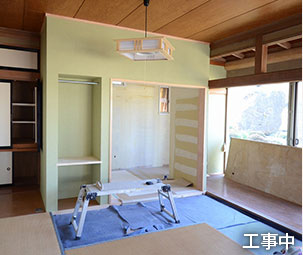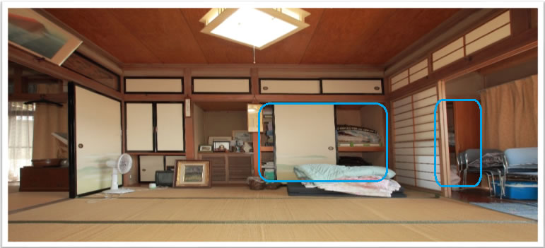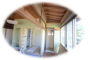 押入れと畳1.5帖分をシャワ-ル-ム、洗面室、洗濯機置き場、トイレにリフォ-ムしました。